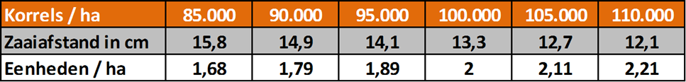 | – Middenvroeg (FAO 230 – 240) | 90.000 – 95.000 |