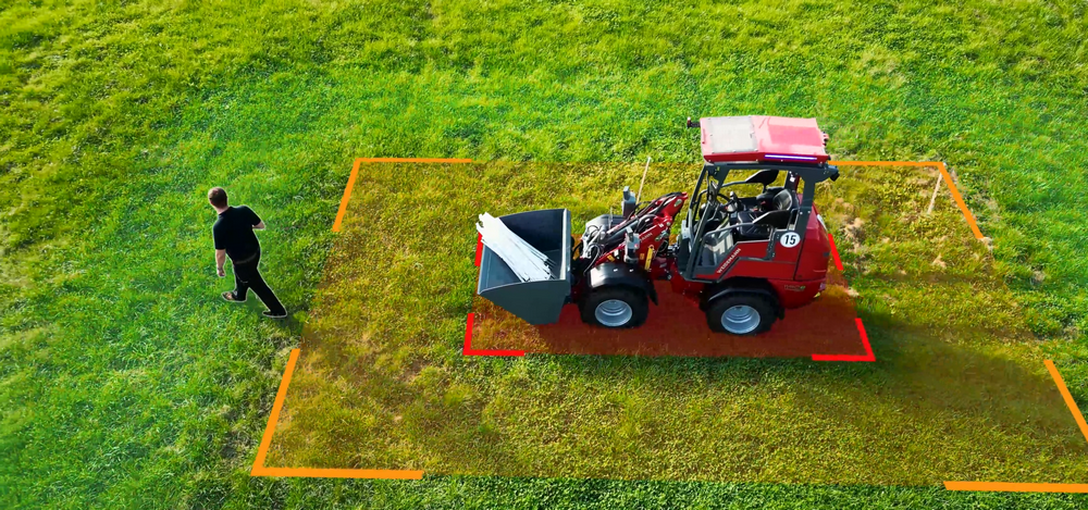 In de praktijk volgt de machine de bestuurder als hij voor de Weidemann loopt. De ‘Follow me’ modus wordt door de bestuurder geactiveerd met een sleutelschakelaar. De bestuurder kan dan van de machine afstappen en met zijn afstandsbediening de voorwaartse beweging activeren. Hiervoor moet de knop op de afstandsbediening om veiligheidsredenen continu ingedrukt blijven. Rondom de machine wordt een virtuele veiligheidszone gecreëerd. Deze strekt zich uit naar alle kanten. Als mensen, dieren of voorwerpen van buitenaf de veiligheidszone binnenkomen, remt de machine af tot volledige stilstand.