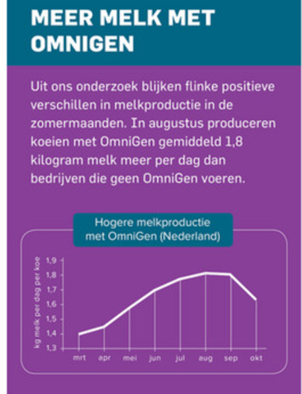 OmniGen helpt om de melkproductie in de zomermaanden op peil te houden, doordat het zorgt voor: