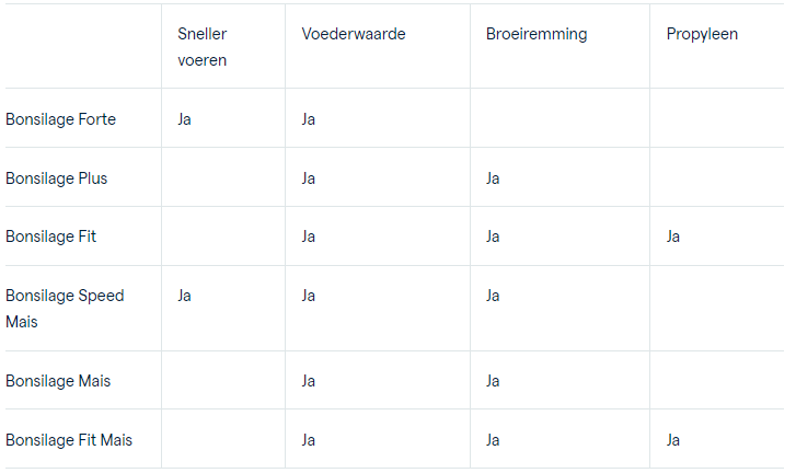 Bonsilage bevat verschillende soorten melk- en azijnzuurbacteriën. Bacteriën die snel veel melkzuur vormen zorgen dus voor een snellere conservering en behoud van voedingsstoffen. Azijnzuur remt zeer effectief de groei van schimmels en gisten bij uitkuilen. Dit helpt broei, smaakverlies en voederwaardeverlies bij uitkuilen te voorkomen.