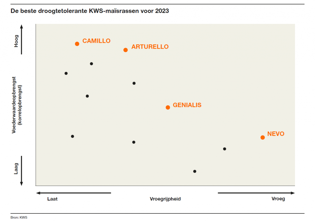 Door KWS wordt al jarenlang onderzoek gedaan naar de droogtetolerantie van maïsrassen. Selectie hierop is uiteraard het beste te doen onder droge groeicondities. Mogelijk onder invloed van klimaatverandering zijn van de afgelopen vijf groeiseizoenen, er vier droog tot zeer droog geweest. Daar waar een praktiserend teler uiteraard minder gelukkig mee is, hebben de veredelaars van maïsrassen daar hun voordeel mee kunnen doen.