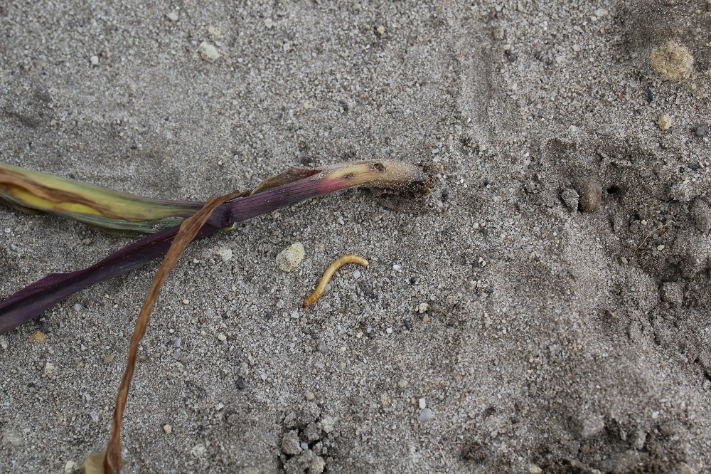 - Schade door ritnaalden. Steeds vaker wordt er schade door ritnaalden geconstateerd. Men name als gevolg een te trage jeugdgroei als gevolg van koude en/of droogte en/of een onvoldoende werking van het anti-ritnaaldmiddel waarmee het zaad behandeld is, is de kans op schade groot. Met name heel jonge planten zijn het slachtoffer omdat de ontluikende larven klein zijn en hun kaken of kauwdelen het niet toelaten om grof materiaal te kauwen. Wanneer een plant door omstandigheden lang in het kiemstadium blijft staan, heeft de ritnaald dus langer de tijd om zich tegoed te doen aan het nog jonge gewas. Enkel voor larven in het 3e en 4e levensjaar, dus in de laatste fases net vóór het eigenlijke insect, de boktor, tevoorschijn komt zijn in staat om grover materiaal te vreten. Wie door de jaren veel organisch materiaal in het veld heeft vergaard, biedt daarmee een geschikte voedingsbron voor jonge ritnaalden.