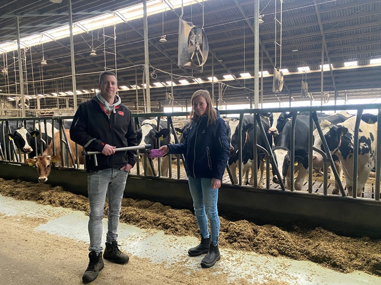 Melkveehouder Bas van Poppel en AHV-adviseur Marieke Claasen.