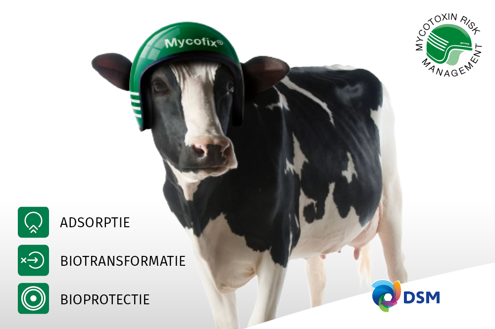 Als er zorgwekkende gehalten aan mycotoxinen gevonden worden, dan is het belangrijk om het probleem bij de oorsprong aan te pakken. Er zijn veel verschillende mycotoxine-binders op basis van kleimineralen (bentoniet) op de markt. Deze zijn echter met name effectief tegen aflatoxine. Omdat Fusariumtoxinen slecht binden zijn mycotoxine-deactivatoren met een meervoudige werking onmisbaar. Daarom heeft DSM Animal Nutrition & Health het product Mycofix in het assortiment, met een drievoudig werkingsmechanisme. Het drievoudig werkingsmechanisme van de Mycofixproductlijn omvat adsorptie, biotransformatie en bioprotectie. Door adsorptie worden de te binden mycotoxinen aangepakt, biotransformatie zorgt dat onder meer Fusariumtoxinen worden omgezet in onschadelijke metabolieten en de bioprotectie ondersteunt de weerstand en lever- en darmgezondheid.