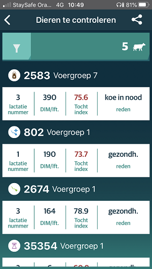 Zicht op de productie per individuele koe heeft Stefan van den Eynde nog niet, hij haalt veel informatie uit de herkauwdata van SenseHub . “We zijn er direct bij. Sterker nog, zelfs als er geen koorts is, geeft het systeem al een signaal. Een alarm voor verminderd herkauwen kan een dag later de indicatie zijn geweest voor uierontsteking.”