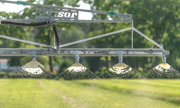 De spuitdoppen zijn van het type waar je ook spuiwater mee kan uitrijden. Verstoppen gaan ze dus niet snel doen – op voorwaarde dat de Calhix met schone tankwagens is aangevoerd. De logistiek achter de Calhix, namelijk vrachtwagens die de uitrijcombinatie op het veld rechtstreeks bevoorraden, is de voornaamste reden waarom de loonwerker in dit verhaal onmisbaar is. Het vraagt wel wat van de planning om de vloeibare kalk er in voor- en najaar nog tussen te nemen.