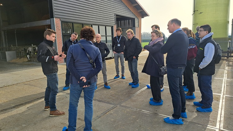 De excursiegangers werden in de bezoekersruimte van de Beleefboerderij welkom geheten door Bob Keurentjes van Lely. Hij was in 2023 vanuit Farm Management Support van het bedrijf uit Maassluis betrokken bij de introductie van de Lely Sphere op het bedrijf. Deze zorgt ervoor dat de mest van de circa 100 melkkoeien, die worden gemolken door twee Lely A5-melkrobots, op het land beter benut kan worden en dat de ammoniakemissie in de stal vermindert.