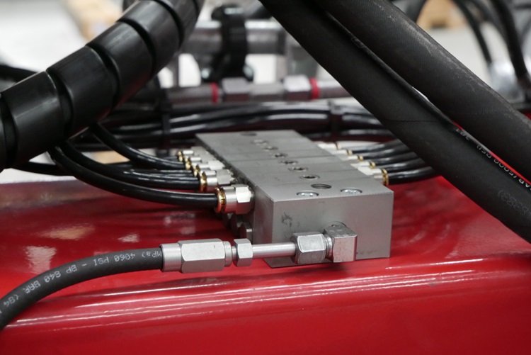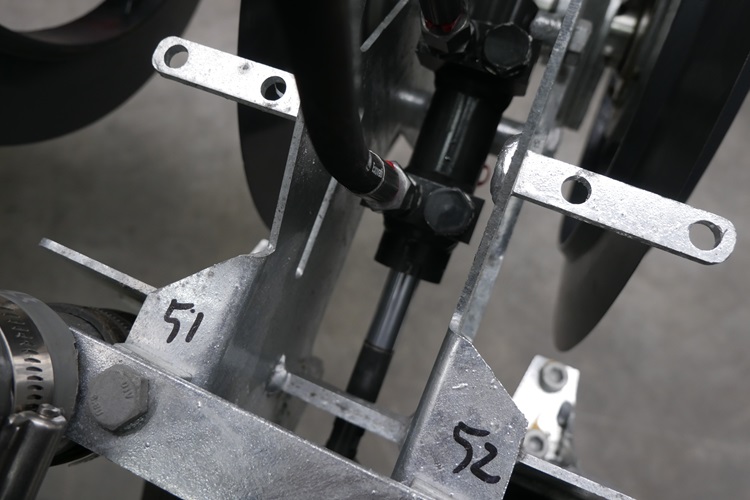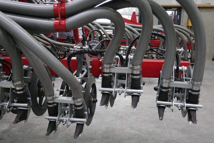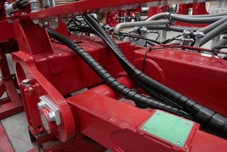 Sectiecontrole is aan de buitenzijde per sectie op twee elementen aangebracht en in het middenstuk op drie elementen. In totaal zijn er 10 secties, die via RTK zijn aangestuurd of handmatig bediend. Hiermee kan in de praktijk keurig netjes aansluitend zijn gewerkt, zonder overlap in de sleuf. Ook de sectieafsluiting is hydraulisch aangestuurd. Dit is minder storingsgevoelig dan afsluiten op luchtdruk, waarbij er na verloop van tijd toch vocht in de elementen kan komen.