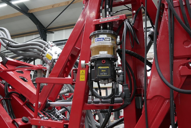 Alle elementen worden tijdens het werk volledig hydraulisch op constante druk gehouden via de stikstofbollen-accumulatoren, voor een zo uniform en egaal mogelijk bemestingsresultaat. Anders dan bij verende constructies blijven de elementen strak bodemvolgend, ook op minder egale ondergrond.