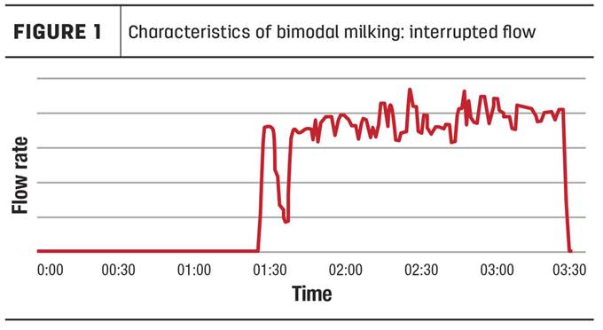 Bimodaliteit is een inefficiënte melkafname, gekenmerkt door een afname in melksnelheid aan het begin van de melking, vaak veroorzaakt door een onjuiste voorbereiding vóór het melken.