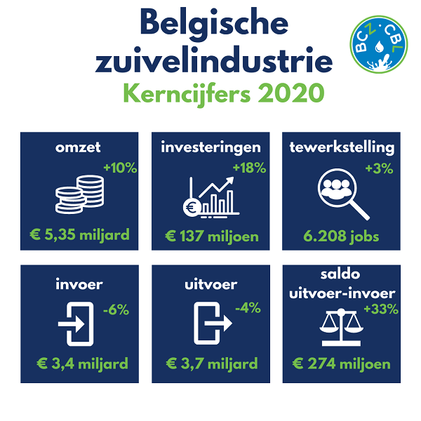 De investeringen in de zuivelindustrie zijn niettegenstaande de onzekerheden en moeilijkheden van een jaar met Covid-19 gestegen met 18 procent tot 137 miljoen euro. Deze toename komt bovenop de stijging in 2019 met 32 procent. De investeringen leiden tot een toename van de tewerkstelling in de zuivelindustrie. Voor het vijfde jaar op rij komen er nieuwe jobs bij. Sedert 2015 is de tewerkstelling met 10 procent toegenomen.