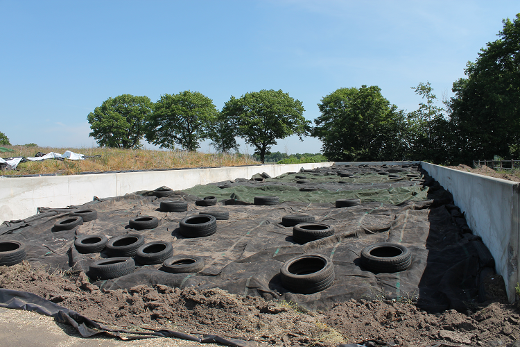 - slechts 14 procent van de stalvloer onderkelderd is en de mest dus grotendeels opgevangen wordt in een bovengrondse mestopslag;