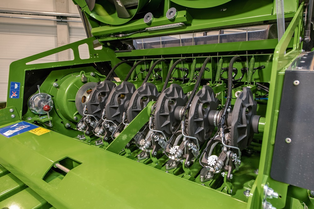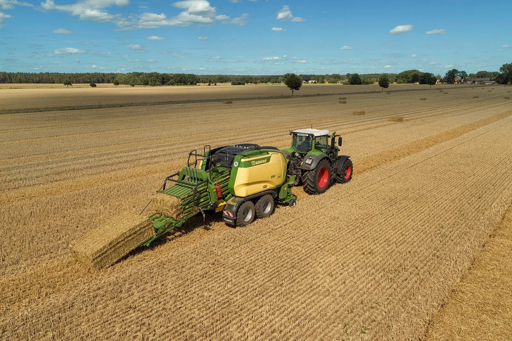 Krone biedt vanaf herfst 2021 de nieuwe V-Knoper aan voor de Big Pack groot pak persen. Een bijzonder voordeel van de innovatieve knoper van Spelle: hij combineert de hoge betrouwbaarheid van de dubbele knoper zonder de losse touweindjes zoals bij de enkele knoper.