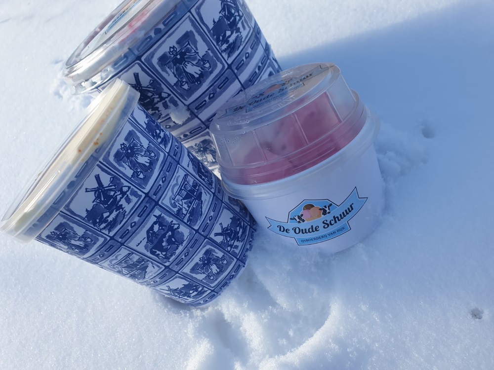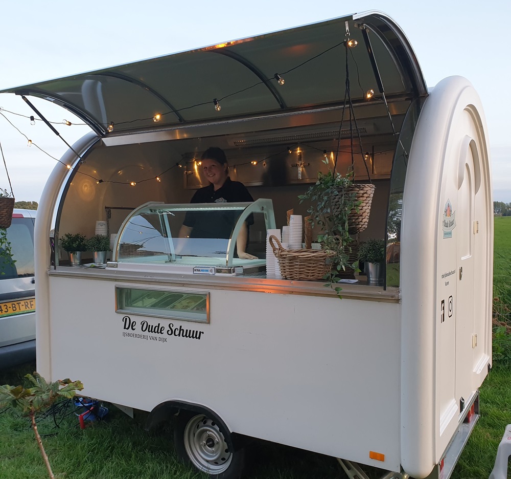Toen Jan en Annette van Dijk begin 2018 over een horecabeurs liepen om te kijken naar de mogelijkheden voor hun melkveebedrijf, proefden ze van de horecawereld én ambachtelijk ijs. Dat wilden zij ook. Daarom werd een gedeelte van hun oude jongveestal omgetoverd tot een ijssalon, inclusief productieruimte en opslag. Met hulp van familie, vrienden en een aannemer openden ze enkele weken later de deuren van IJsboerderij De Oude Schuur, samen met dochter Lotte.