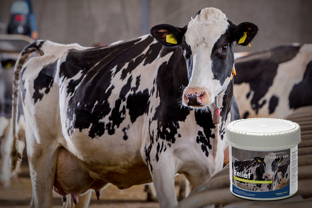 Farm-O-San Relief kan toegediend worden bij periodes van herstel, bijvoorbeeld bij zware verlossing, na klauw- of uierbehandelingen. Geef de Farm-O-San Relief bolus oraal met een daarvoor geschikte bolusschieter. Verstrek 1 bolus per koe. Indien nodig herhalen na 4-5 dagen.