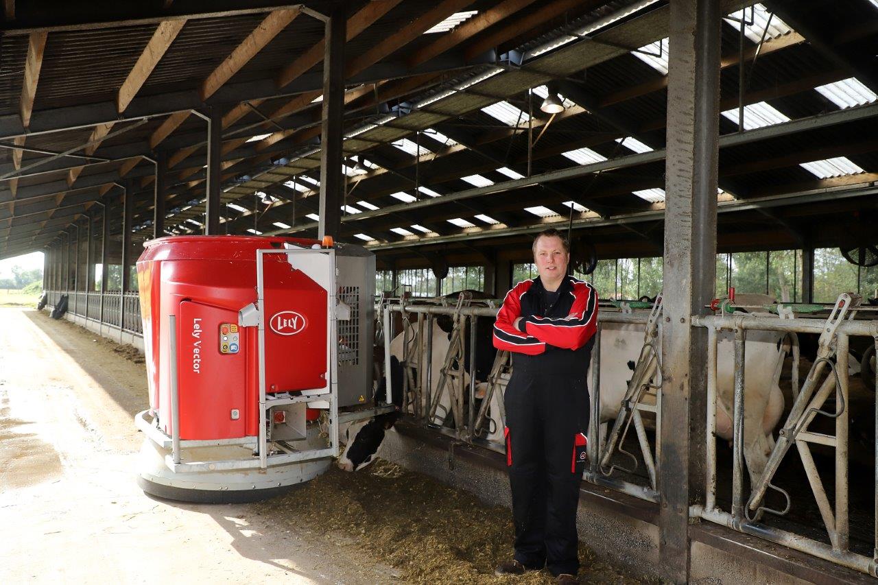 Sinds 2016 melken de veehouders met drie Lely Astronaut A4 melkrobots en dit jaar investeerden ze in de Vector voerrobot. Ze waren op zoek naar een automatisch voersysteem dat hen tijdwinst en meer flexibiliteit zou geven, en op de lange termijn kosten zou besparen. Vader en zoon zagen zeker ook voordeel in het vaker voeren. ‘Wij hebben een open stal en zien, als het een warme dag is, dat het voer snel droogt en dat de koeien dan niet zo veel meer eten. Nu ze altijd vers voer krijgen, kan het tijdens warme dagen niet opdrogen en blijven ze eten. Het blijft langer vers en er blijft ook minder restvoer over dan vroeger’. Er is dus minder voer nodig. Voordat ze tot aanschaf over gingen, zijn ze gaan kijken naar de Lely Vector dagen in Nederland en later ook nog bij Bart Vanderstraeten op zijn bedrijf (Vector verkoper bij Lely Center Vlaanderen). Het duurde uiteindelijk ongeveer een jaar voordat ze de Lely Vector aanschaften.