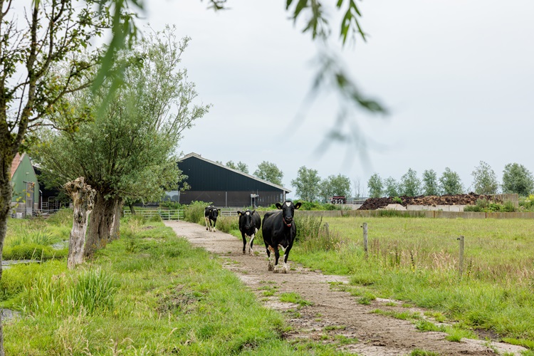 In de wei naast de provinciale weg grazen de koeien. Ze vormen een bont gezelschap. Tussen zwartbonte en roodbonte koeien en blaarkoppen, lopen ook bruine en gespikkelde dieren. Melkveehouder Nils Spaans wijst op twee koeien met een lakenvelder-aftekening die bij elkaar lopen. ‘Dat is een tweeling, waarschijnlijk eeneiig; ze zijn altijd samen.’ Spaans vertelt dat het een hobby is om een zeer diverse melkveestapel te hebben. ‘Dat vinden we gewoon mooi.’
