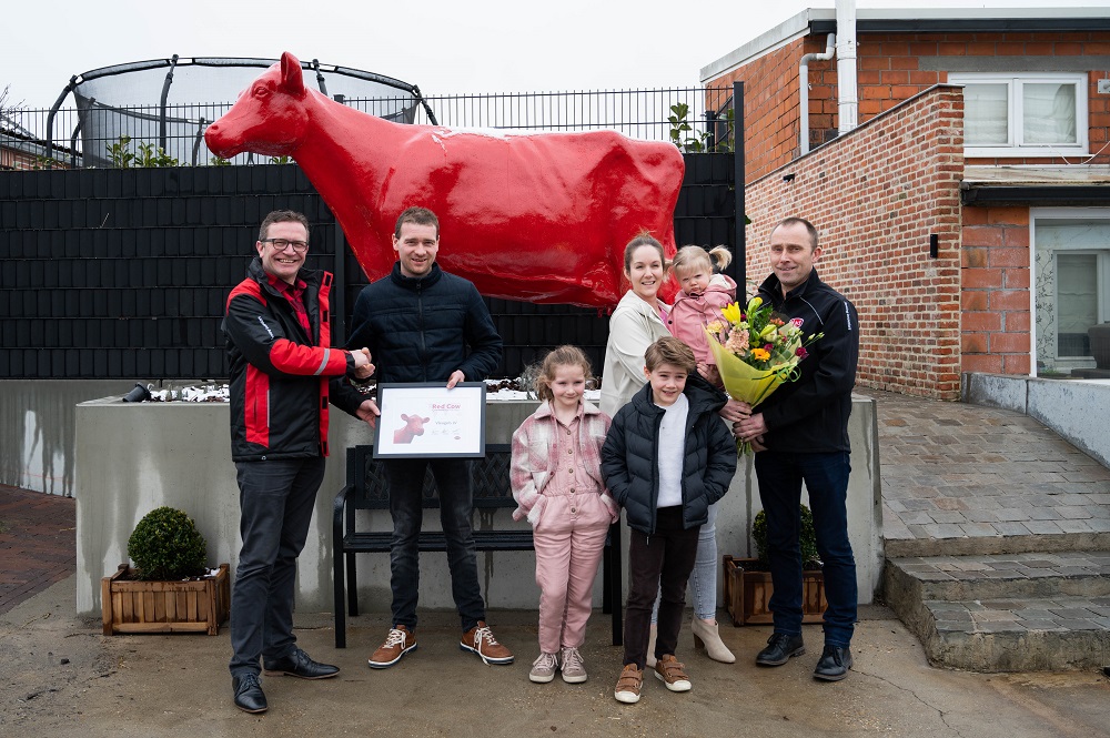Sinds februari verwelkomt Lely familie Vleugels in de ‘Red Cow Community’. Met acht Lely Astronaut A5 melkrobots is het melkveebedrijf van familie Vleugels het eerste Dairy XL bedrijf in Vlaanderen. Afgelopen woensdag werd officieel het ‘Red Cow’ certificaat overhandigd.