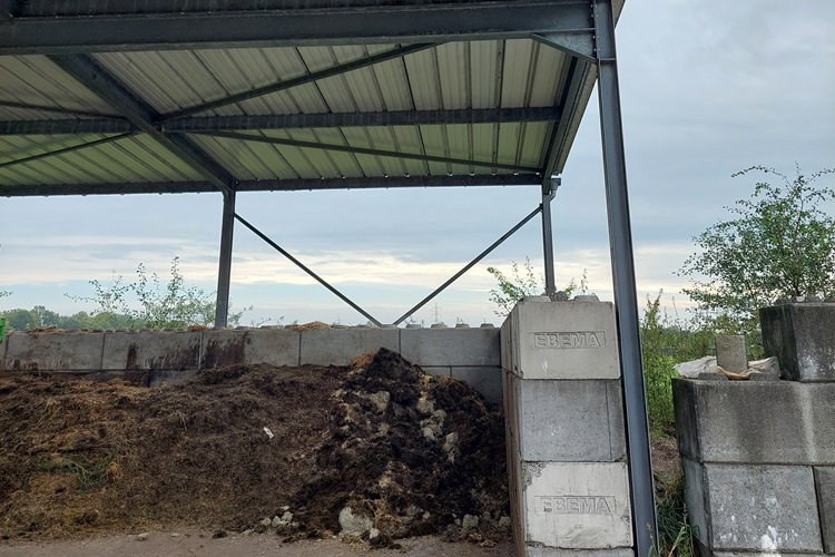 Door vaste mest te overkappen kun je de hoeveelheid te zuiveren water verminderen. Beeld: Provinciaal onderzoekscentrum Hooibeekhoeve