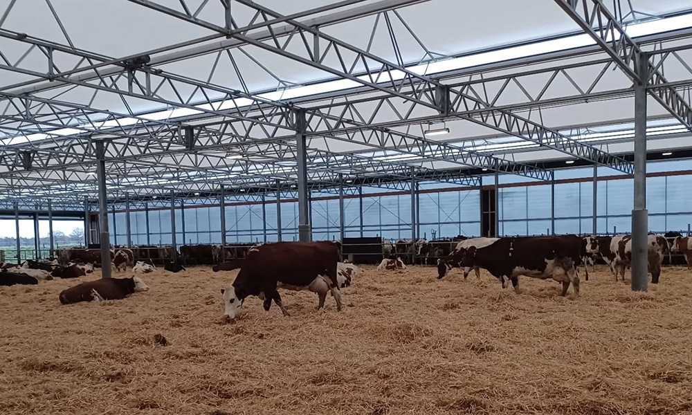 Vorig jaar nam de maatschap op de thuislocatie een nieuwe vrijlevenstal met serredak in gebruik en zijn de melkkoeien naar één locatie gegaan. De 70 stuks jongvee lopen op de tweede locatie. Momenteel lopen de koeien in de vrijlevenstal op stro, waardoor er mooie organische mest wordt geproduceerd. In de zomer lopen ze op zand. Dan wordt de vaste mest verwijderd met een beddingcleaner. De urine wordt afgevoerd en opgeslagen met behulp van een drainagesysteem.