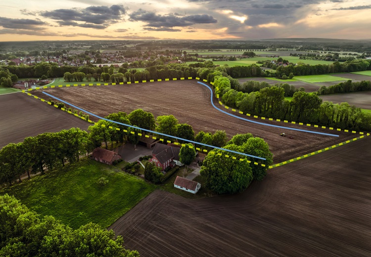 • In het kaartaanzicht kan op meerdere manieren worden gezoomd, met inbegrip van een nieuwe zoomstand voor een overzicht van het perceel. Lijnen voor het spoor, rijpaden en referentielijnen eindigen grafisch aan de grenzen van het perceel.