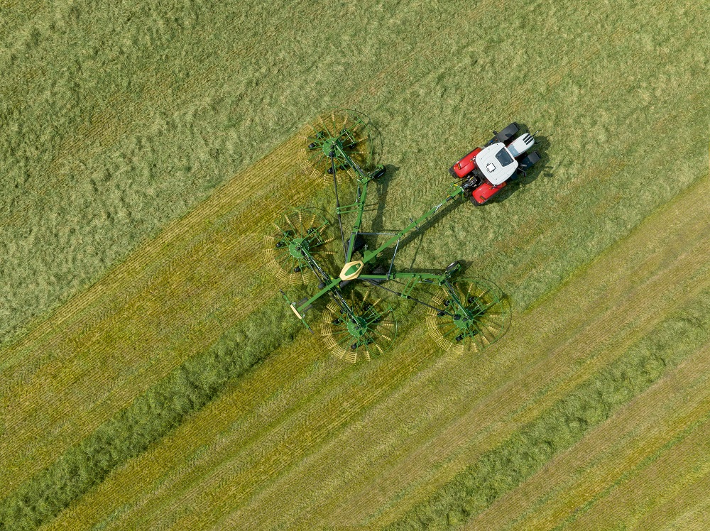 Dankzij de hydraulisch verstelbare draagarmen van de achterste elementen kunnen zwaden met een breedte van 1,40 m tot 2,90 m worden geproduceerd. Daarmee kunnen de volgende oogstmachines – balenpers, opraap- en transportwagen of hakselaar – altijd optimaal worden belast.
