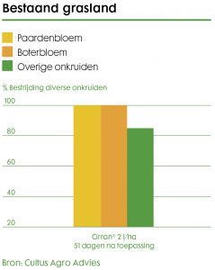 Als melkveehouder streeft u naar een smakelijk rantsoen met een hoge voederwaarde. Dat bereikt u met een hoge bezetting van hoogwaardige grassen (vooral Engels raaigras en timotheegras). Een hoge bezetting met onkruiden als paardenbloem, ridderzuring, distels, vogelmuur, boterbloem en herderstasje heeft een nadelig effect op de ruwvoeropbrengst. Goed grasland (met weinig onkruiden) levert makkelijk twee ton ruwvoer extra per ha op. Bovendien is de voederwaarde van goed presterend grasland veel beter.