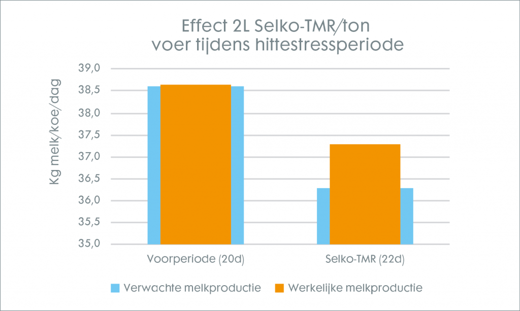 In de praktijk worden het jongvee en de droogstaande koeien niet elke dag voorzien van vers voer. De droogstandsgroep is simpelweg te klein om dagelijks (of in de zomer tweemaal daags) een rantsoen te mengen. Dit heeft een wisselende voeropname tot gevolg van dag tot dag. Voeropname is cruciaal voor vlot afkalven en het zonder problemen opstarten van de lactatie. Selko-TMR houdt het rantsoen langer fris en is daarom onmisbaar in een gemengd droogstandsrantsoen, zeker wanneer niet dagelijks gevoerd wordt.