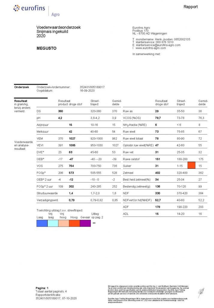 Megusto: het maïsras met de beste kuiluitslagen in de Benelux! Dit seizoen is weer meer Megusto geteeld. En niet zonder reden. Al voor het vijfde achtereenvolgende jaar scoort het maisras Megusto als beste met de hoogste voederwaardeopbrengst op de Aanbevelende Rassenlijsten van Nederland en België. Dit bewijst overduidelijk zijn kwaliteit, wat naast de hoogste korrelopbrengst, ook tot uiting komt in goede cijfers voor de landbouwkundige eigenschappen, zoals vroegheid bloei. Ook roemen telers van Megusto de hoge voederwaarde op basis van de kuiluitslag. Dit komt niet alleen tot uiting in een hoge zetmeelopbrengst, maar ook een hoge zetmeelconcentratie en verteringscoëfficiënt van de totale organische stof. Dit resulteert in veel glycogene energie wat sterk melkdrijvend werkt, waardoor bespaard kan worden op de krachtvoerkosten.