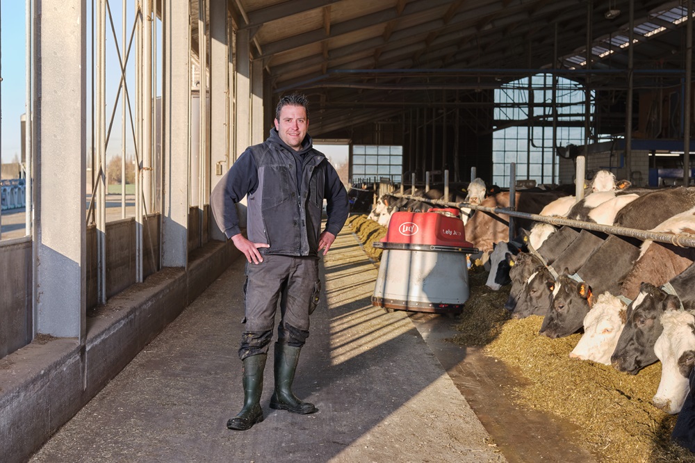 Met de bouw van een nieuwe 0+6+0 stal in 2010 besloten de veehouder het melken te automatiseren. “Destijds zijn we met twee melkrobots gestart en geleidelijk zijn we verder gegroeid naar 200 koeien met drie melkrobots. De stal is mooi vol nu”, vertelt Jan tevreden. Om efficiënter te werken en voor meer arbeidsgemak hebben ze in 2021 ook het voerschuiven geautomatiseerd. “Eerder schoven we het voer aan met een oude trekker met een band ervoor. Deze was aan vervanging toe en daarom zijn we gaan kijken naar andere mogelijkheden”, geeft de veehouder aan.