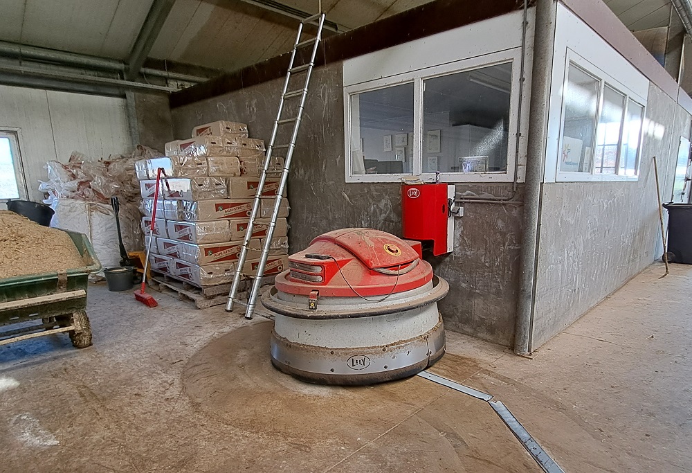 Om het voer regelmatig aan te schuiven, schafte het bedrijf in 2009 de Lely Juno aan. “Anders zouden we elke avond met de trekker naar de overkant van de weg moeten om het voer aan te schuiven. Dat zagen we niet zitten. Het geeft gemak, maar ik ben er ook van overtuigd dat de voeropname beter is door het regelmatige aanschuiven. Als de Juno in beweging komt, staat het voerhek zo vol.” De Lely Discovery zorgt dat de emissie-arme Proflex Meadowfloor geregeld schoon gemaakt wordt.