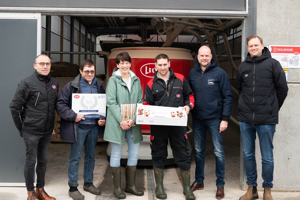 Een dubbele mijlpaal! De familie van Leeuwe in het Belgische Sint-Margriete is van start gegaan met de Lely Vector. Op het melkveebedrijf Van Leeuwe LV werden de koeien al gemolken met drie A5 melkrobots van Lely en sinds februari worden de dieren gevoerd met het geautomatiseerde voersysteem Vector. Een extra feestelijke gebeurtenis; dit is namelijk de eerste modulaire voerkeuken in België én de 50e modulaire voerkeuken die in samenwerking met ID Agro voor Lely is geplaatst.