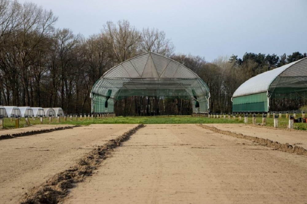 Verrolbare serres als regenkappen over het gewas