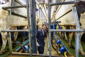Op het bedrijf melkt Dirk dagelijks zijn 150 koeien in de melkput. “Dit vind ik machtig mooi werk”, vertelt Dirk enthousiast. Met het doel het voeren te optimaliseren en de stap te maken naar een gemengd rantsoen is de veehouder vorig jaar overgestapt op automatisch voeren. “Eerder voerden we de koeien met een doseerwagen, maar de koeien waren altijd aan het selecteren aan het voerhek”, vertelt Aalbers.